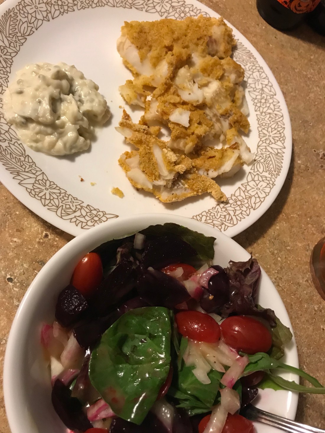 I never thought homemade fish fry would be so easy or taste so good! π I bought two fillets of Wild Caught Cod, battered them and baked them at 375 degrees for about 40 minutes (until crispy). Delish!