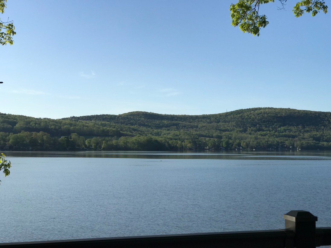 There is no shortage of background sounds for me to read by here. We have the sound of the waves gently meeting the shore, the chirping birds all around (Robins, Cardinals, Wren, Crows, Canada Geese, Red-Winged Black Birds, Chickadees, Merganzer Ducks and so much more!!), the low drone of the motor of fishing boats and once the rest of the lake wakes up the people! This is my happy place for sure! It’s so serene here.