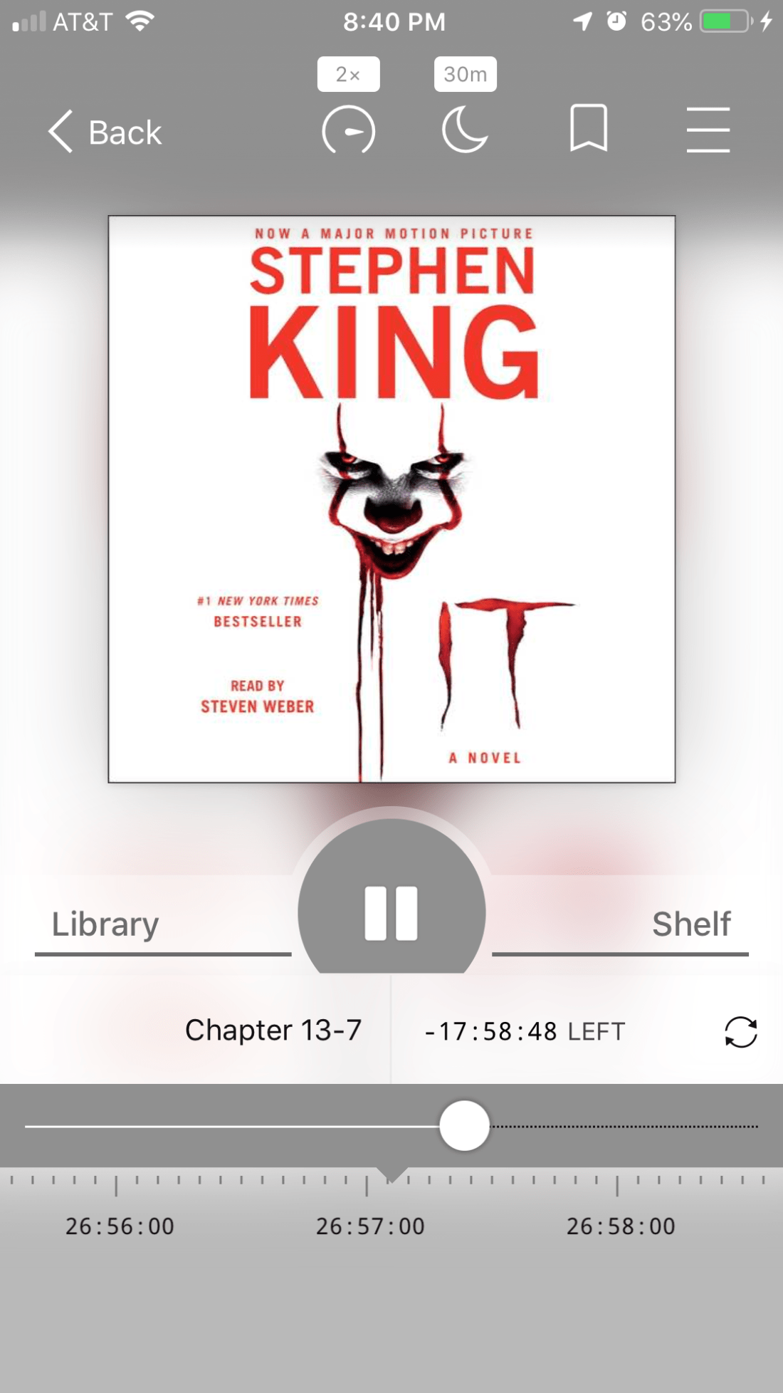 This is a long term TBR veteran of mine, and I’ve started but never finished twice. This time I loaned the audiobook from my Library on the Libby App and got about 64% of the way through it before my loan expired. Have no fear, or do if clowns aren’t your thing 🤡, but I do own a copy of IT in paperback and will be finishing the beast of a novel next weekend for a Readathon!!! So far I am really enjoying the story and the psychological suspense is to die for! 😜 *ta dum tiss*