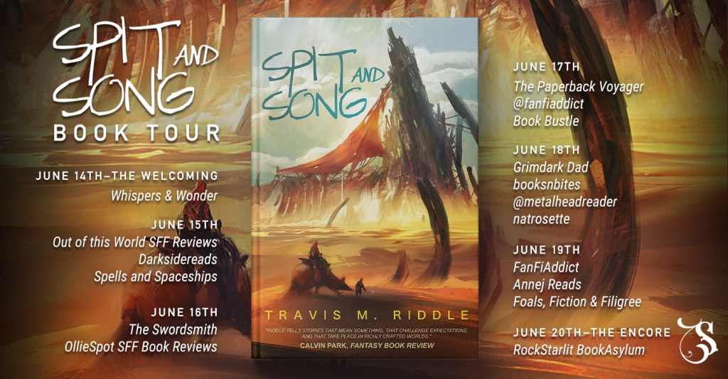 Hey friends, glad to be bringing you yet another fabulous book tour! I am so excited to present a spotlight on Spit and Song by Travis M Riddle, a magical book that will take you on an adventure of your lifetime. This is an Indie published Adult Fantasy, and is definitely one that you should grab if Fantasy is your jam! I am a lover of big fantasy books, and Spit and Song definitely checks that box. It also delivers an amazing world that is so unique and different, that I tend to fall through the pages as I’m reading and lose track of my surroundings. I’m about halfway through the book at the moment and I can’t get enough! Really looking forward to kicking back at the lake house this weekend and finishing this adventure. Let me tell you more about it! 🙂